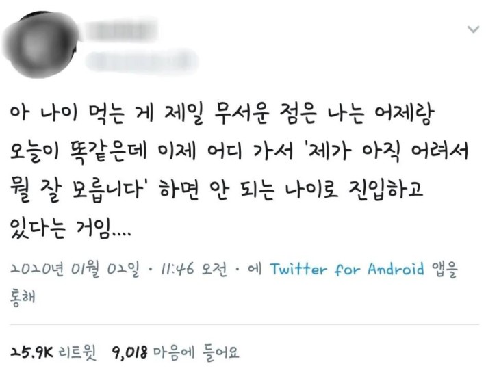 나이 먹는게 제일 무서운 점