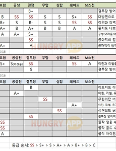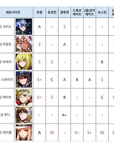 세븐나이츠12 2019년 3월 세븐나이츠 등급표 세나 능력치 표 2019. 3. 9. [세븐나이츠 2019 2월 등급표] 일반 영웅 등급표 세나 최신판 방어형답게 방덱에서 활약중인 세븐나이츠 주인공 에반입니다. 세나 에반은 일반 영웅인만큼 획득이 쉬우니 방덱을 해보고싶으신 분들은 에반을 키워 결장에 투입해보시는걸 추천드릴게요~ 결투장 방덱 용사님들은 부활증 보석과 막기보석 세팅으로 에반이 최대한 단단하게 오래 살도록 만들어주세요! 2019. 2. 9. [세븐나이츠 2019 2월 등급표] 일반영웅 등급표 세나 최신판 모든 PVE 콘텐츠의 만능 딜러 신화각성 세인 입니다. 길드 던전, 스마트 세나, 공성전, 요일던전 등 쫄작을 제외한 거의 모든 PVE 콘텐츠에 사용된다고 봐도 무방한 만능 딜러입니다. 전체 공격기와 높은 딜량, 그리고 짧은 쿨타임 덕분에 스킬 운용법도 단순해서 초보분들이 사용하시기에도 좋아요. PVE에 약한 용사님들은 신각 세인은 1순위로 키우시는걸 추천드릴게요! 이 외에 쫄작에 사용되는 영웅 루리, 아탈란테 등에 대해 궁금하시다면 아래 링크에서 확인해 주세요~ 2019. 2. 9. [세븐나이츠 2019 2월 등급표] 펜타곤 나이트크로우 혁명단 등급표 세나 최신판 신화 각성 오르카도 세나 트루드와 아랑처럼 출시와 동시에 신화 각성이 되며 매우 좋은 스킬셋을 갖고 나왔습니다. 방감과 받피증을 동시에 갖고 있어 단단한 적을 저격하기에 적격입니다. 또한 4인기와 관통 공격 덕분에 5인 뎀감도 뚫을 수 있답니다! 2019. 2. 9. [세븐나이츠 2019 2월 등급표] 숨은 강자들 세나 최신판 숨은 강자들 중 처음으로 신화 각성이 된 세나 아랑입니다. 상위권 결투장에서 매우 높은 픽률을 자랑하고 있으며 같은 숨강 그룹의 아멜리아의 약공 버퍼 자리를 차지하기도 했어요. 적군을 무려 돼지로 바꾸는 흥미로운 스킬 변이가 있기도 하답니다! 2019. 2. 9. [세븐나이츠 2019 2월 등급표] 칠대성 소속불명 천상의 수호자 등급표 세나 최신판 세나 트루드는 출시 이후 매우 큰 사랑을 받고 있어요! 처음으로 출시와 동시에 신화 각성이 된 영웅인만큼 메타에 알맞는 성능을 자랑합니다. 급소 공격 스킬로 신각 델론즈를 견제할 수 있으며 스킬 무효화가 있어 아군을 더 오래 살 수 있게 해주기도 해요! 세븐나이츠 트루드가 없는 용사님들은 실시간 결투장 로테이션 영웅으로 트루드를 사용할 수 있으니 한 번 체험해보세요~ 2019. 2. 9. [세븐나이츠 2019 2월 등급표] 사황 구사황 등급표 세나 최신판 사황, 구사황 영웅 중에서는 각성 연희의 육성을 추천드려요! 최근 결투장에서 수면면역과 급소공격이 많아져서 픽률이 많이 낮아졌지만 높은 생존력을 자랑하는 패시브와 준수한 딜량 덕분에 실시간 결투장이나 신화 요일던전, 스마트 세나 등에서도 사용될 수 있답니다! 2019. 2. 9. [세븐나이츠 2019 2월 등급표] 다크나이츠 등급표 다크나이츠 추천 영웅은 방덱의 빛 세나 플라튼 입니다. 잠시 결투장에서 모습을 감췄다가 다시 방덱에 등장한 영웅입니다. 본인이 3번째 맞을 때마다 적군 전체가 관통 피해를 받으며 자체 회복효과도 있어 방어에 특화된 영웅이에요. 방덱 용사님들은 여유가 된다면 열심히 키우시는걸 추천드릴게요~ 2019. 2. 9. [세븐나이츠 2019 2월 등급표] 세븐나이츠 세나 최신판 초보분들께 가장 추천 드리는 영웅은 PVE 필수 요원 각성 레이첼입니다. 스마트 세나의 네가지 콘텐츠에서 모두 유용하게 사용되는 캐릭터에요. 딜러로 사용되는 신각 세인 다음으로 무조건 키워야 하는 영웅입니다. PVE 세팅이 끝나신 분들은 공덱, 방덱 모두 사용되며 결투장을 섭렵하고 있는 신화 각성 아일린의 육성을 추천드릴게요~ 2019. 2. 9. [세븐나이츠 항우 리뷰] 캐릭터 리뷰 항우의 활용처는 역시 투기장입니다! 스킬 셋 자체가 투기장 전용으로 나오기도 했고 투기장 포인트로 얻을 수 있는 스페셜 영웅이기 때문에 투기장에 특화된 영웅으로 보입니다! 개인적으로 1:1 싸움을 계속해야 하는 투기장에서 항우의 흡혈은 매우 좋은 성능을 보여줄 것으로 보입니다. 버퍼가 없어도 항우의 스킬은 대부분 1인기이기 때문에 투기장에서 좋은 위력을 발휘할 것으로 보입니다! 투기장을 즐기고 싶은 신 용사님들은 꼭 투기장 포인트를 수집하셔서 항우를 획득하시는 걸 꼭꼭 추천드립니다! 아무래도 투기장에 특화된 영웅으로 출시되었기 때문에 항우가 없으신 용사님들은 투기장을 100% 활용하기 어렵다고 생각됩니다.....! 이백과 마찬가지로 포인트로 영웅을 얻을 수 있기 때문에 항우를 꼭 얻으셔서 투기장 콘텐.. 2019. 2. 9. [세븐나이츠 최근 등급표] 세나 영웅 등급표 최신판 2019. 1. 30. [세븐나이츠 펫 등급표] 2019년 1월 등급표, 최신 등급표, 넷마블, 세나 등급 2019. 1. 24. 이전 1 다음